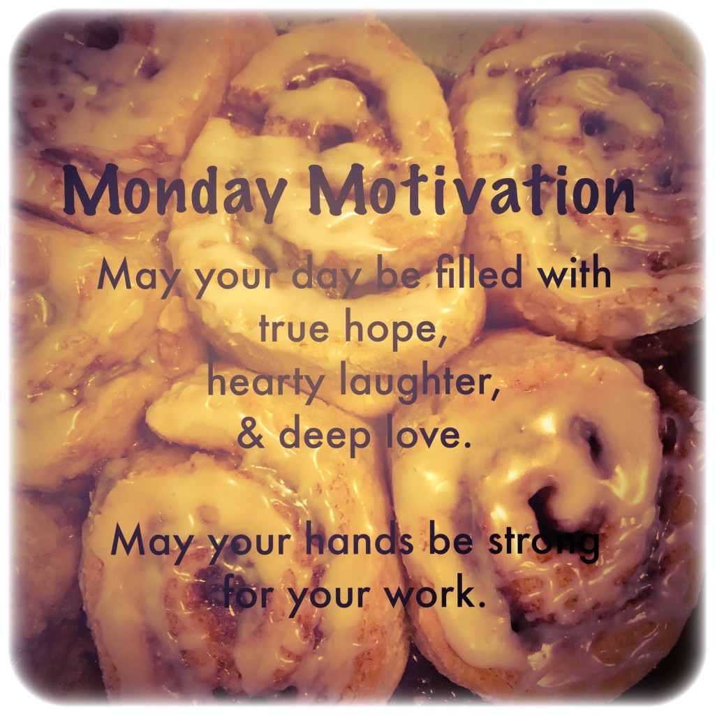 What motivates you on a Monday morning? Do you run? Light a candle? Bake? Relax? Drink a pot of coffee like me? Whatever motivates you, I hope your Monday finds your heart full of hope, joy, and love. May your hands be strong for your work!